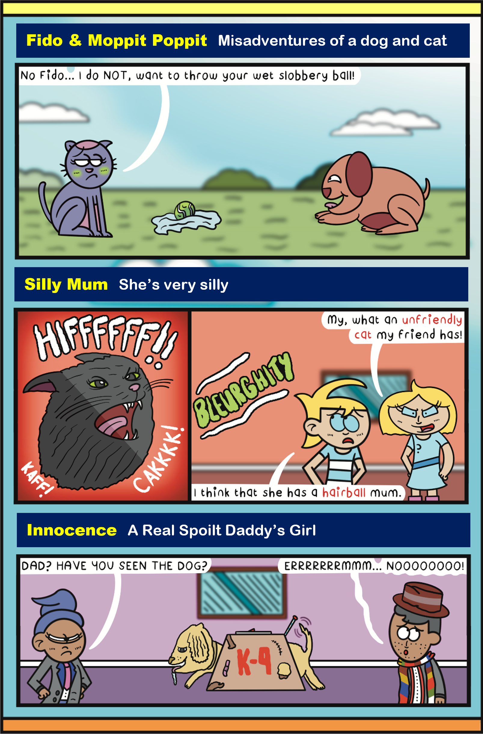 The main changes include the logo and the strip's speech bubbles. Apart from that though, the overall design has mainly been untouched. Oh, and the strip's logos and text on top of the page have too, been tweaked. The text in black is now in Arial Black and not Aharoni. The text for the website link and the word presents over the logo are too, now changed from Aharoni to Calibri (Body).